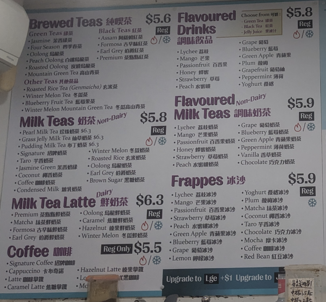 This menu is suitable for visitors looking for quick orders or a light meal paired with tea or coffee. The range balances traditional tea options with specialty drinks and light dessert items, catering to a variety of tastes throughout the day.
