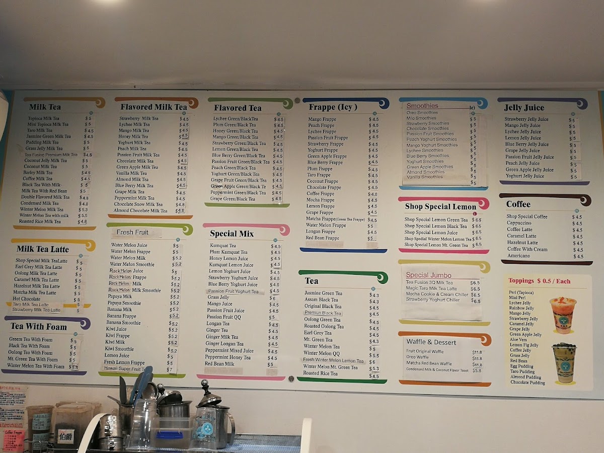 - Light Food and Desserts: Includes items like Matcha Red Bean Waffles and Fruit Waffle, providing light meal options that complement the beverage selection.